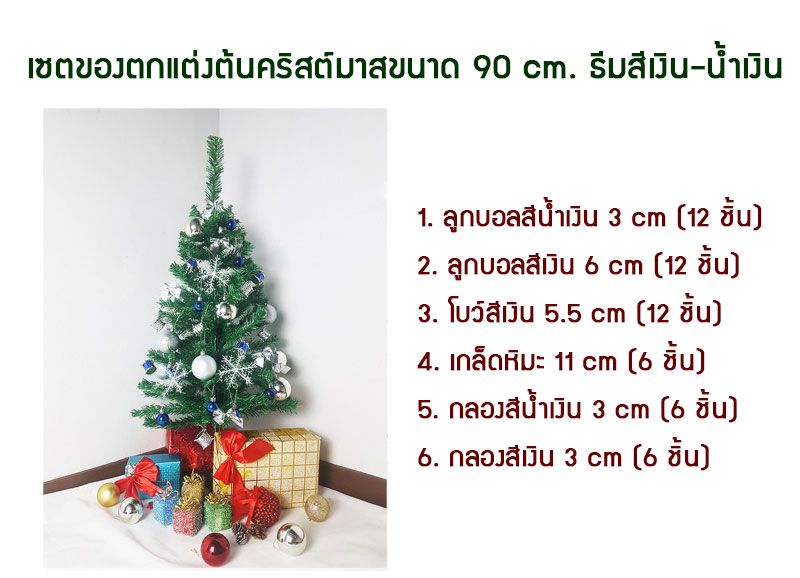 ![[3 ฟุต / 90 ซม.] ต้นคริสมาสต์สีเขียวพร้อมของตกแต่งธีมสีเงิน-น้ำเงิน ต้นคริสมาสปลอมชนิดพุ่มเตี้ย ต้นคริสต์มาสขนาดเล็ก 3' / 90CM Christmas Tree](https://co.lnwfile.com/_/co/_raw/p2/d7/vn.jpg)